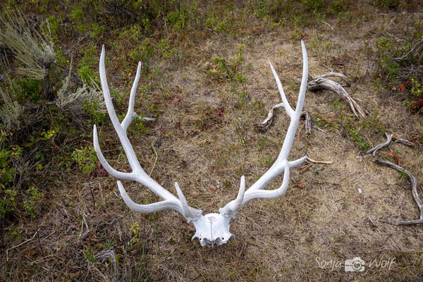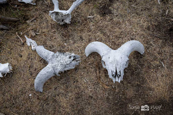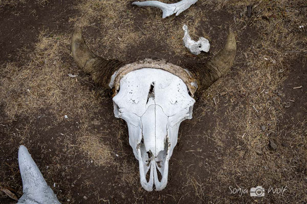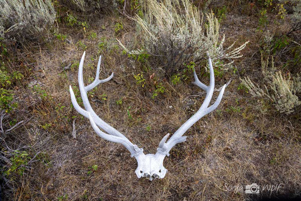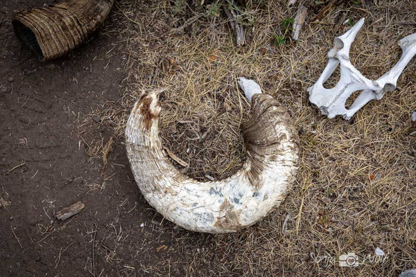 Zum Abschluss haben wir noch eine kleine Wanderung gemacht. Ziel war eine Stelle, an der Ranger Schädel von toten Tieren ablegen. Diese werden allerdings durch gezielte "Zerstörung" für Sammler wertlos gemacht, z. B. wird das Geweih abgesägt. Auch an alten Knochen wird noch von anderen Tieren genagt und das letzte bisschen "Nährstoff" herausgeholt.